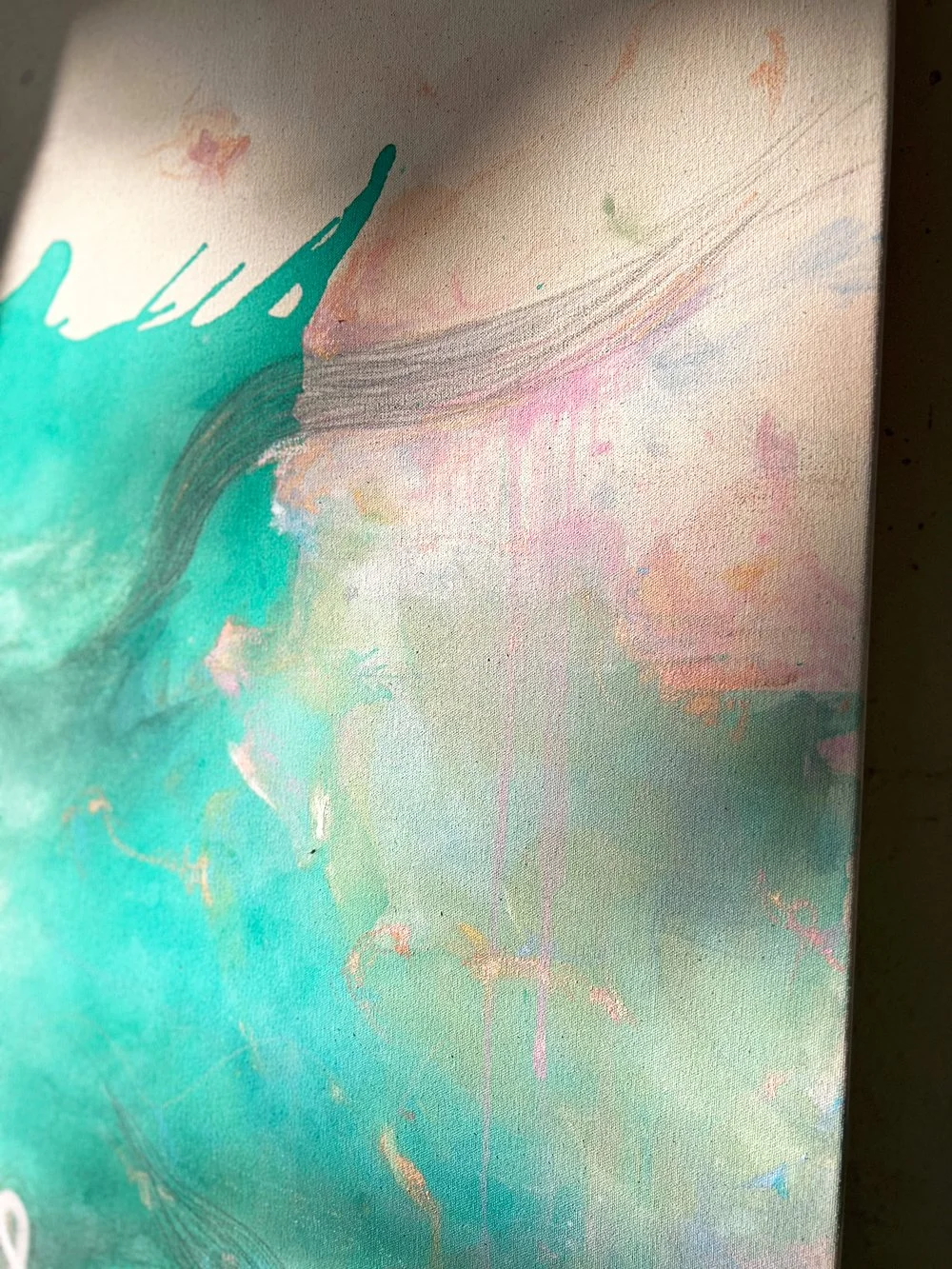 As a Miami based abstract artist working with layered materials on raw canvas, I am interested in how a painting lingers. How it continues to vibrate internally even after you look away.